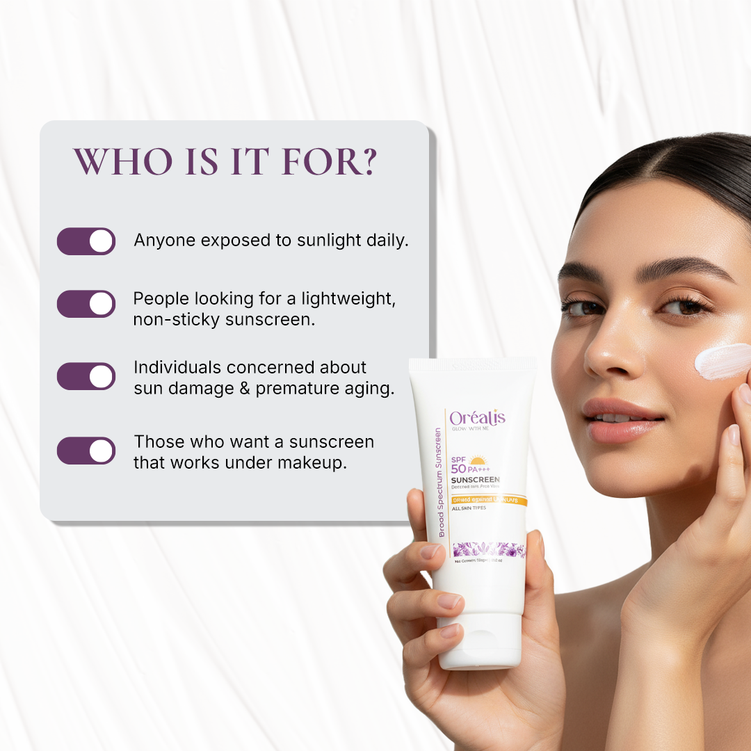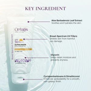 Shield your skin from harmful UV rays with Orealis SPF 50 PA+++ Sunscreen—a broad-spectrum sunscreen designed to protect, nourish, and perfect your skin. This lightweight sunscreen for daily use offers high protection against both UVA and UVB rays while maintaining a non-greasy, matte finish.